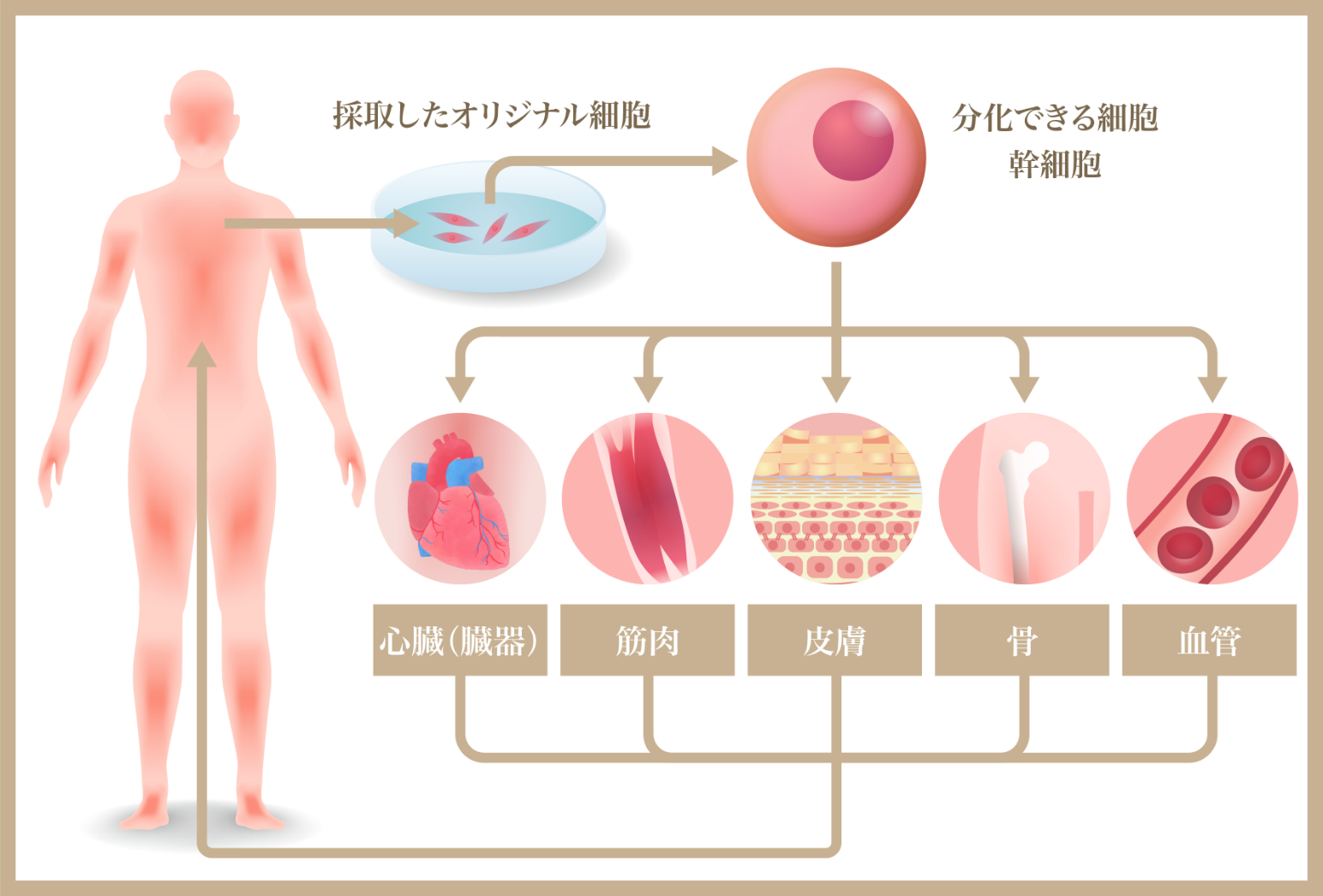 それを点滴や局所注射などで投与し、修復の必要な部位へ集まり、その組織を修復・再生します。